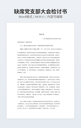 本作品内容为不及格检讨书下载,大小为19.8KB,作品为高清大图模板,格式为docx, 属于检讨书模板,作品模板源文件下载后可用编辑替换,模板中如有人物画像仅供参考禁止商用。小Q办公网-提供简历,PPT,Word,Excel优质模板素材下载模版平台,拥有海量的工作总结、竞聘求职、年终颁奖、计划书等。 通过小Q办公网下载检讨书模板源文件编辑修改源文件文字和图片即可使用。