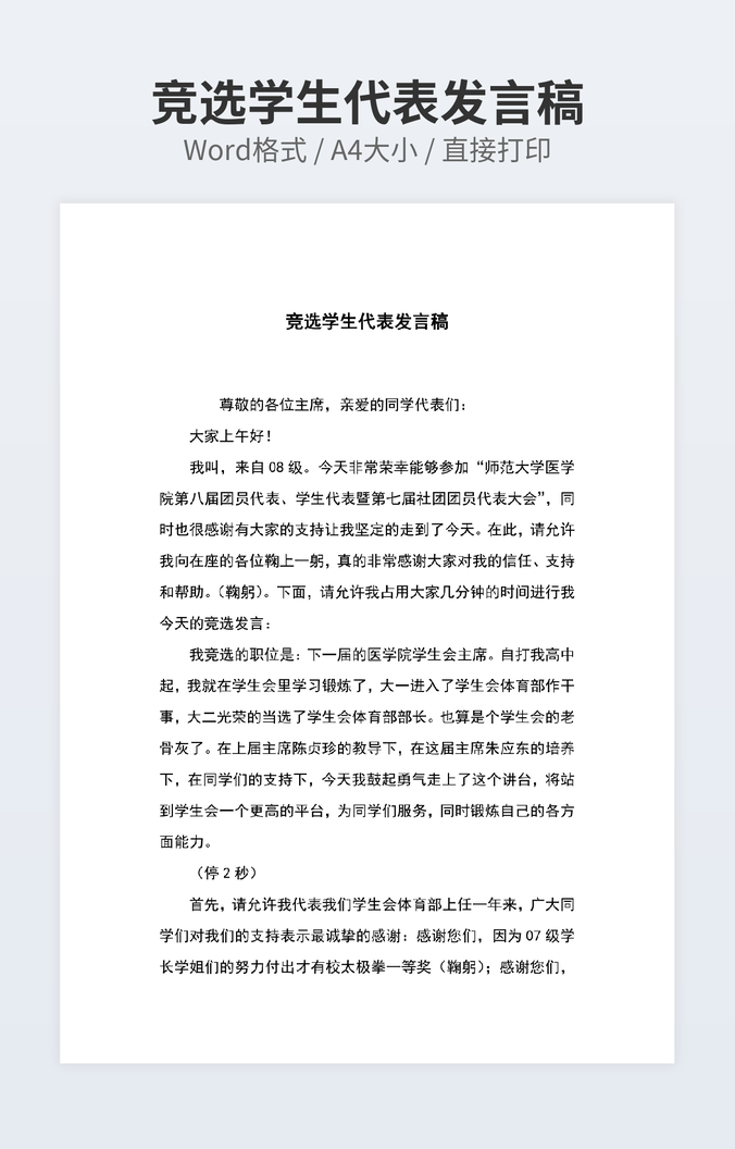 【特殊限制】设计师仅对作品中独创性部分享有著作权,对作品中含有的国旗、国徽等政治图案不享有权利,仅作为作品整体效果的示例展示,禁止商用。 相关关键词: 大学 发言稿