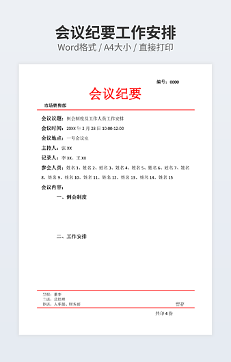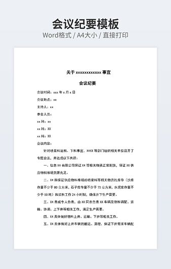 本作品内容为办公室会议纪要下载,大小为25.24KB,作品为高清大图模板,格式为docx, 属于会议记录模板,作品模板源文件下载后可用编辑替换,模板中如有人物画像仅供参考禁止商用。小Q办公网-提供简历,PPT,Word,Excel优质模板素材下载模版平台,拥有海量的工作总结、竞聘求职、年终颁奖、计划书等。 通过小Q办公网下载会议记录模板源文件编辑修改源文件文字和图片即可使用。