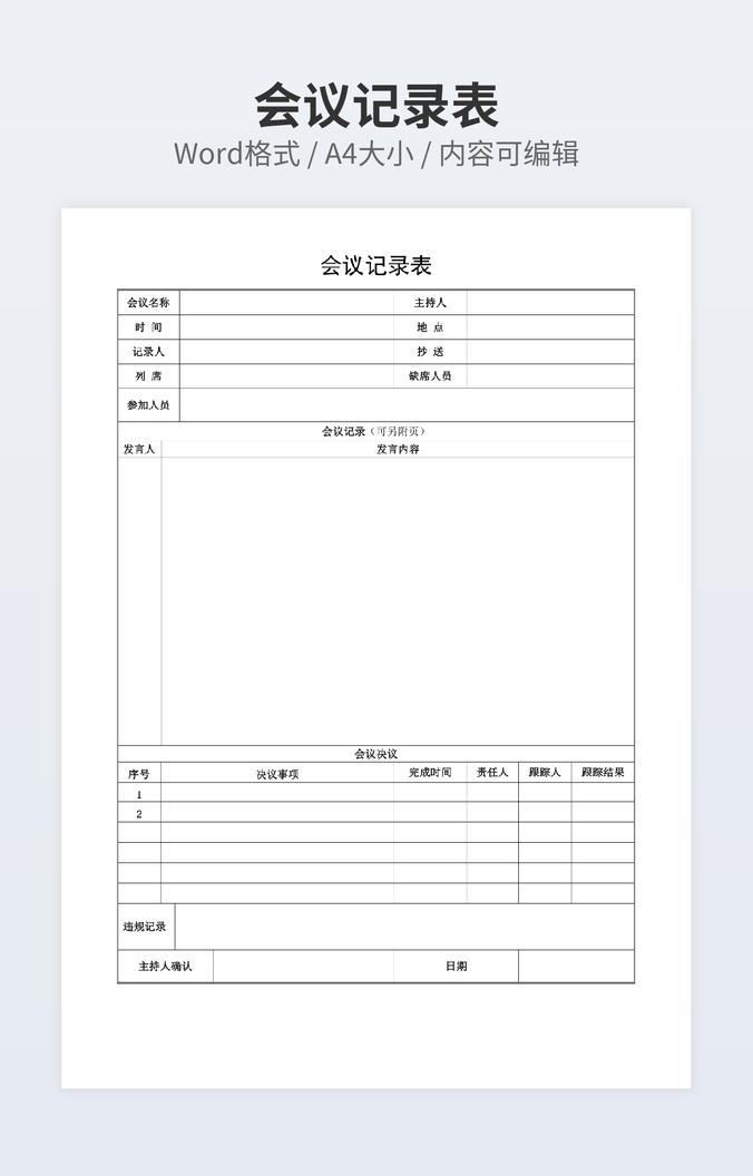 本作品内容为金融公司会议纪要下载,大小为19.66KB,作品为高清大图模板,格式为docx, 属于会议记录模板,作品模板源文件下载后可用编辑替换,模板中如有人物画像仅供参考禁止商用。小Q办公网-提供简历,PPT,Word,Excel优质模板素材下载模版平台,拥有海量的工作总结、竞聘求职、年终颁奖、计划书等。 通过小Q办公网下载会议记录模板源文件编辑修改源文件文字和图片即可使用。