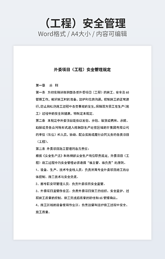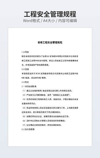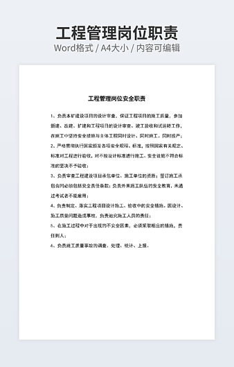 本作品内容为工程安全生产管理下载,大小为15.97KB,作品为高清大图模板,格式为docx, 属于工程管理模板,作品模板源文件下载后可用编辑替换,模板中如有人物画像仅供参考禁止商用。小Q办公网-提供简历,PPT,Word,Excel优质模板素材下载模版平台,拥有海量的工作总结、竞聘求职、年终颁奖、计划书等。 通过小Q办公网下载工程管理模板源文件编辑修改源文件文字和图片即可使用。