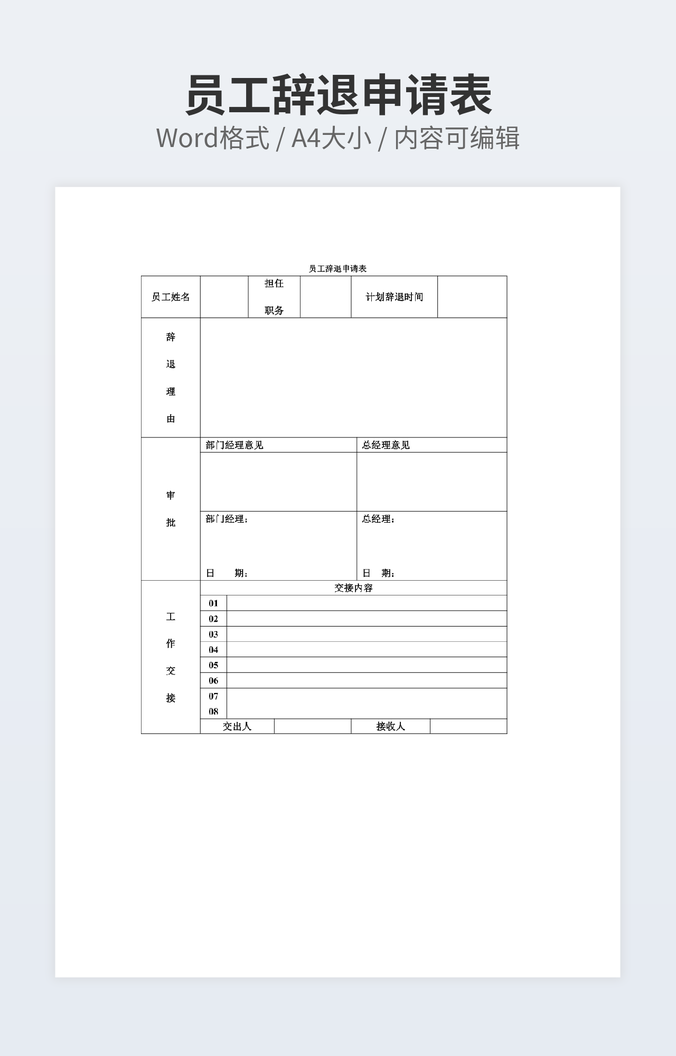 【特殊限制】设计师仅对作品中独创性部分享有著作权,对作品中含有的国旗、国徽等政治图案不享有权利,仅作为作品整体效果的示例展示,禁止商用。 相关关键词: 离职 管理制度