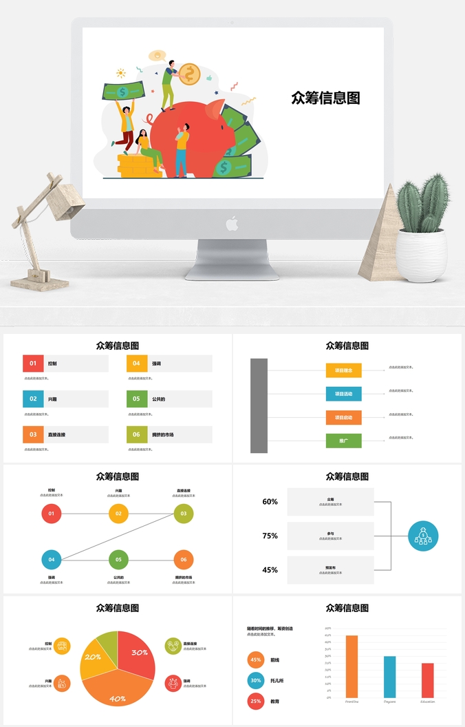 彩色简约风工程过程信息图PPT模板