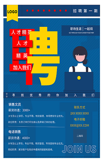 【特殊限制】设计师仅对作品中独创性部分享有著作权,对作品中含有的国旗、国徽等政治图案不享有权利,仅作为作品整体效果的示例展示,禁止商用。 相关关键词: 员工 招聘 聘用