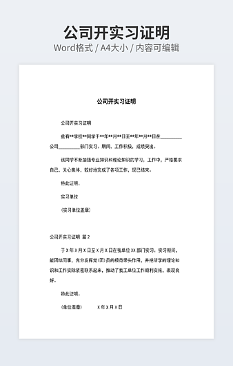 【特殊限制】设计师仅对作品中独创性部分享有著作权,对作品中含有的国旗、国徽等政治图案不享有权利,仅作为作品整体效果的示例展示,禁止商用。 相关关键词: 公司 寒假 实习 证明