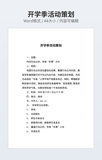 【特殊限制】设计师仅对作品中独创性部分享有著作权,对作品中含有的国旗、国徽等政治图案不享有权利,仅作为作品整体效果的示例展示,禁止商用。 相关关键词: 活动策划 范文 10篇