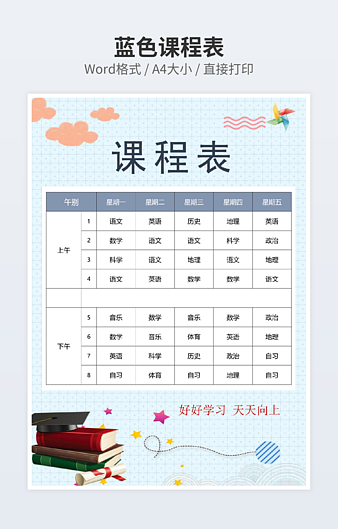 上一篇:浅绿色课程表下一篇:深色卡通课程表为您推荐