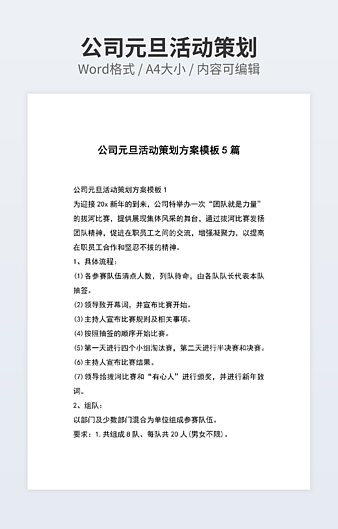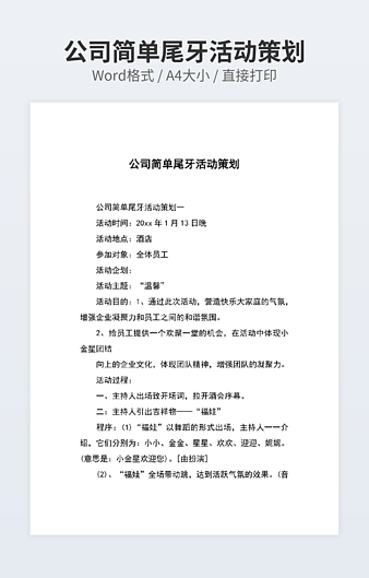 本作品内容为班级创意活动策划下载,大小为19.53KB,作品为高清大图模板,格式为docx, 属于活动策划模板,作品模板源文件下载后可用编辑替换,模板中如有人物画像仅供参考禁止商用。小Q办公网-提供简历,PPT,Word,Excel优质模板素材下载模版平台,拥有海量的工作总结、竞聘求职、年终颁奖、计划书等。 通过小Q办公网下载活动策划模板源文件编辑修改源文件文字和图片即可使用。