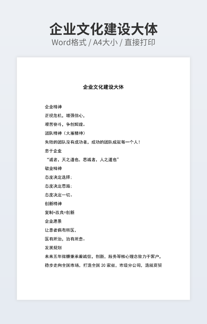 【特殊限制】设计师仅对作品中独创性部分享有著作权,对作品中含有的国旗、国徽等政治图案不享有权利,仅作为作品整体效果的示例展示,禁止商用。 相关关键词: XX 公司 企业文化 口号