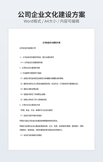【特殊限制】设计师仅对作品中独创性部分享有著作权,对作品中含有的国旗、国徽等政治图案不享有权利,仅作为作品整体效果的示例展示,禁止商用。 相关关键词: 企业文化 实施方案