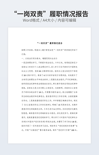 【特殊限制】设计师仅对作品中独创性部分享有著作权,对作品中含有的国旗、国徽等政治图案不享有权利,仅作为作品整体效果的示例展示,禁止商用。 相关关键词: 书记 上半年 一岗双 一岗双责 工作 落实 报告