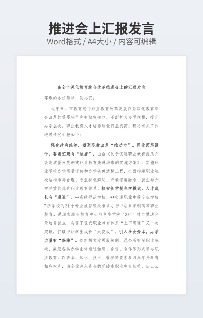 本作品内容为成本预算绩效管理工作推进会上讲话下载,大小为15.71KB,作品为高清大图模板,格式为docx, 属于讲话发言模板,作品模板源文件下载后可用编辑替换,模板中如有人物画像仅供参考禁止商用。小Q办公网-提供简历,PPT,Word,Excel优质模板素材下载模版平台,拥有海量的工作总结、竞聘求职、年终颁奖、计划书等。 通过小Q办公网下载讲话发言模板源文件编辑修改源文件文字和图片即可使用。