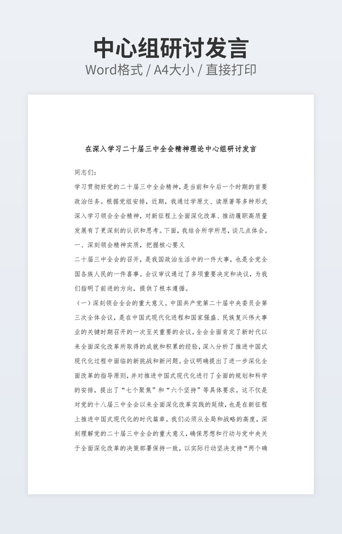 【特殊限制】设计师仅对作品中独创性部分享有著作权,对作品中含有的国旗、国徽等政治图案不享有权利,仅作为作品整体效果的示例展示,禁止商用。 相关关键词: 理论学习 中心组 发言