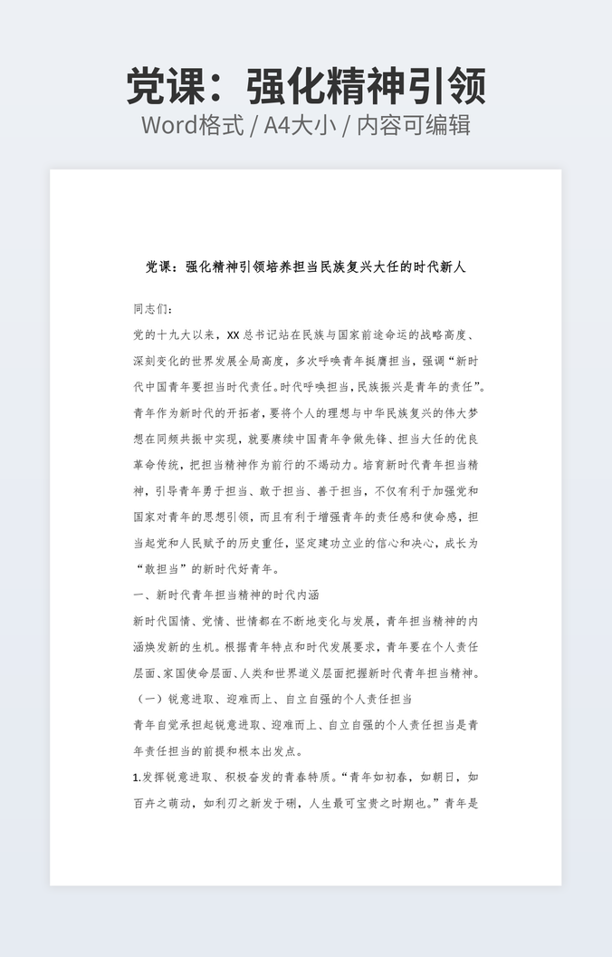 本作品内容为金融党课讲稿:为建设金融强国提供青年人才支撑(银行)下载,大小为15KB,作品为高清大图模板,格式为docx, 属于党课培训模板,作品模板源文件下载后可用编辑替换,模板中如有人物画像仅供参考禁止商用。小Q办公网-提供简历,PPT,Word,Excel优质模板素材下载模版平台,拥有海量的工作总结、竞聘求职、年终颁奖、计划书等。 通过小Q办公网下载党课培训模板源文件编辑修改源文件文字和图片即可使用。