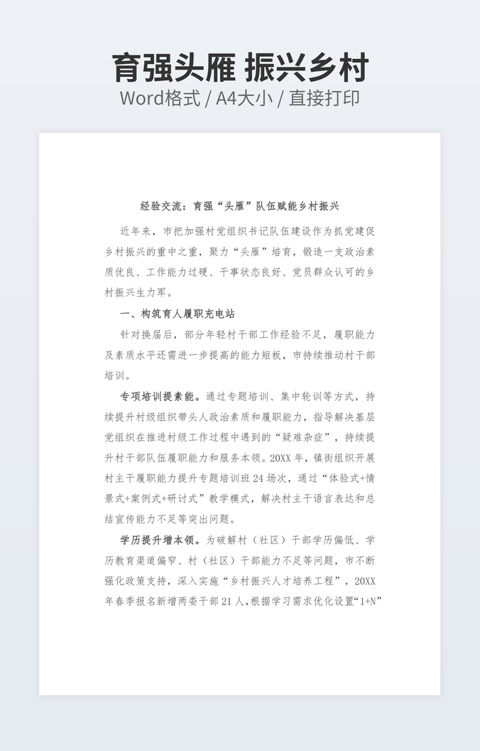 本作品内容为“五星”支部振兴乡村经验交流下载,大小为24.46KB,作品为高清大图模板,格式为docx, 属于经验交流模板,作品模板源文件下载后可用编辑替换,模板中如有人物画像仅供参考禁止商用。小Q办公网-提供简历,PPT,Word,Excel优质模板素材下载模版平台,拥有海量的工作总结、竞聘求职、年终颁奖、计划书等。 通过小Q办公网下载经验交流模板源文件编辑修改源文件文字和图片即可使用。
