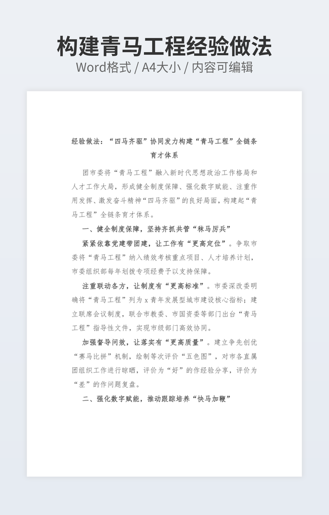 本作品内容为党建工作经验交流下载,大小为14.61KB,作品为高清大图模板,格式为docx, 属于经验交流模板,作品模板源文件下载后可用编辑替换,模板中如有人物画像仅供参考禁止商用。小Q办公网-提供简历,PPT,Word,Excel优质模板素材下载模版平台,拥有海量的工作总结、竞聘求职、年终颁奖、计划书等。 通过小Q办公网下载经验交流模板源文件编辑修改源文件文字和图片即可使用。