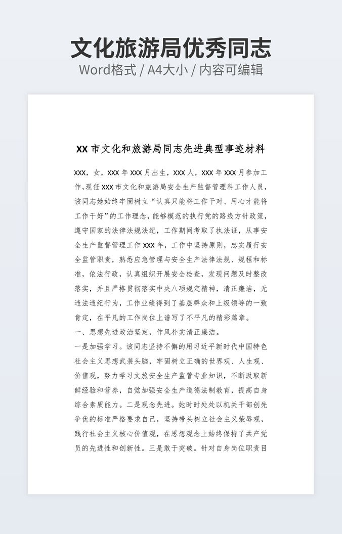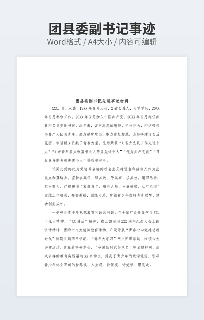 本作品内容为优秀党员先进事迹(教师)下载,大小为14.48KB,作品为高清大图模板,格式为docx, 属于先进事迹模板,作品模板源文件下载后可用编辑替换,模板中如有人物画像仅供参考禁止商用。小Q办公网-提供简历,PPT,Word,Excel优质模板素材下载模版平台,拥有海量的工作总结、竞聘求职、年终颁奖、计划书等。 通过小Q办公网下载先进事迹模板源文件编辑修改源文件文字和图片即可使用。