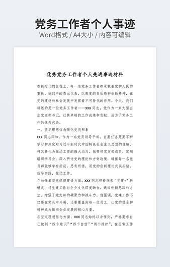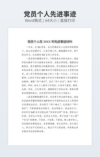 本作品内容为信访工作个人事迹下载,大小为19.83KB,作品为高清大图模板,格式为docx, 属于先进事迹模板,作品模板源文件下载后可用编辑替换,模板中如有人物画像仅供参考禁止商用。小Q办公网-提供简历,PPT,Word,Excel优质模板素材下载模版平台,拥有海量的工作总结、竞聘求职、年终颁奖、计划书等。 通过小Q办公网下载先进事迹模板源文件编辑修改源文件文字和图片即可使用。
