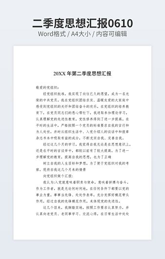 本作品内容为季度预备党员思想报告下载,大小为13.11KB,作品为高清大图模板,格式为docx, 属于思想汇报模板,作品模板源文件下载后可用编辑替换,模板中如有人物画像仅供参考禁止商用。小Q办公网-提供简历,PPT,Word,Excel优质模板素材下载模版平台,拥有海量的工作总结、竞聘求职、年终颁奖、计划书等。 通过小Q办公网下载思想汇报模板源文件编辑修改源文件文字和图片即可使用。
