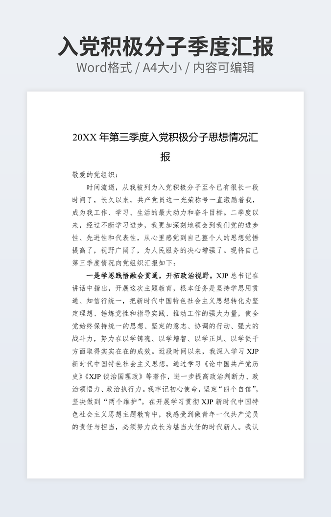 本作品内容为思想文化宣传工作发展下载,大小为13.32KB,作品为高清大图模板,格式为docx, 属于思想汇报模板,作品模板源文件下载后可用编辑替换,模板中如有人物画像仅供参考禁止商用。小Q办公网-提供简历,PPT,Word,Excel优质模板素材下载模版平台,拥有海量的工作总结、竞聘求职、年终颁奖、计划书等。 通过小Q办公网下载思想汇报模板源文件编辑修改源文件文字和图片即可使用。