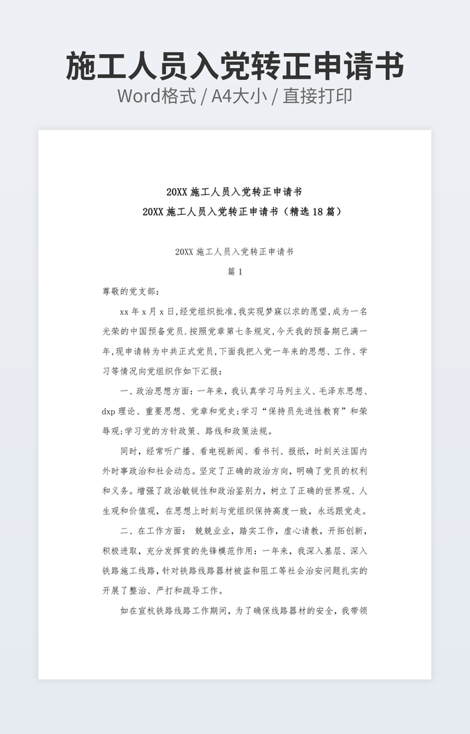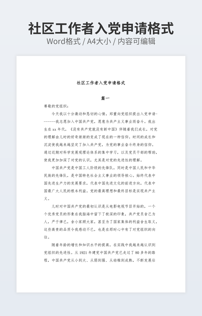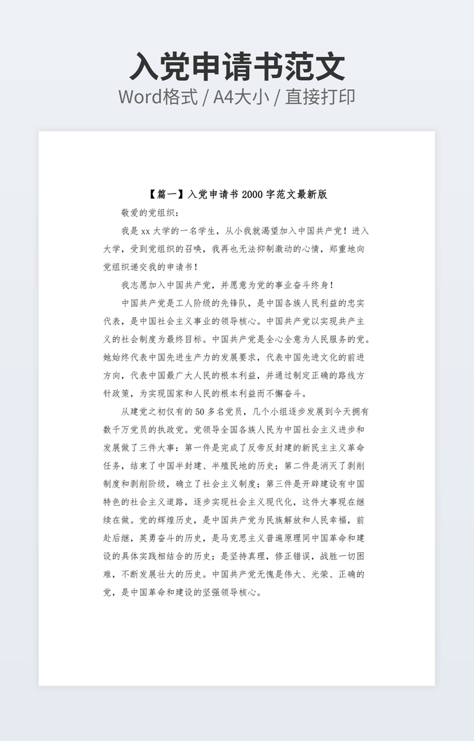 【特殊限制】设计师仅对作品中独创性部分享有著作权,对作品中含有的国旗、国徽等政治图案不享有权利,仅作为作品整体效果的示例展示,禁止商用。 相关关键词: 入党 入党申请 申请书 新版