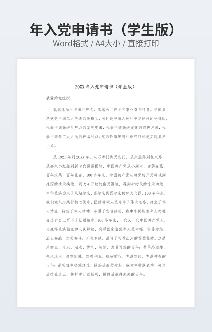 【特殊限制】设计师仅对作品中独创性部分享有著作权,对作品中含有的国旗、国徽等政治图案不享有权利,仅作为作品整体效果的示例展示,禁止商用。 相关关键词: 入党 入党申请 申请书 范文
