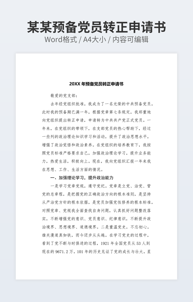 【特殊限制】设计师仅对作品中独创性部分享有著作权,对作品中含有的国旗、国徽等政治图案不享有权利,仅作为作品整体效果的示例展示,禁止商用。 相关关键词: 有关 公职人员 入党 入党申请 申请书