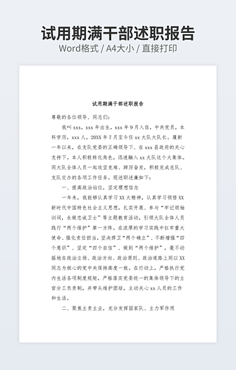 本作品内容为国有企业工会干部述职报告下载,大小为25.04KB,作品为高清大图模板,格式为docx, 属于述职述廉模板,作品模板源文件下载后可用编辑替换,模板中如有人物画像仅供参考禁止商用。小Q办公网-提供简历,PPT,Word,Excel优质模板素材下载模版平台,拥有海量的工作总结、竞聘求职、年终颁奖、计划书等。 通过小Q办公网下载述职述廉模板源文件编辑修改源文件文字和图片即可使用。