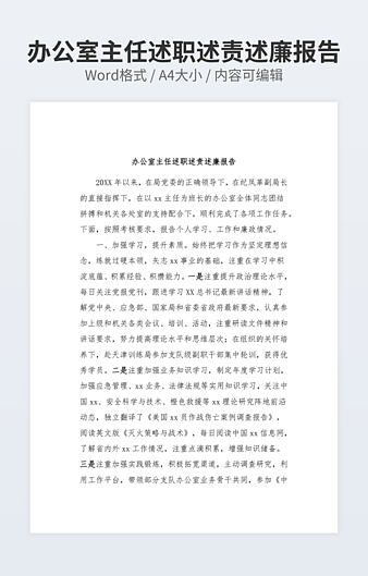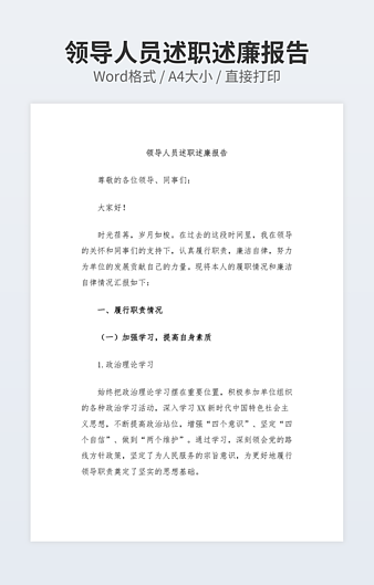 【特殊限制】设计师仅对作品中独创性部分享有著作权,对作品中含有的国旗、国徽等政治图案不享有权利,仅作为作品整体效果的示例展示,禁止商用。 相关关键词: 述职 述廉 报告