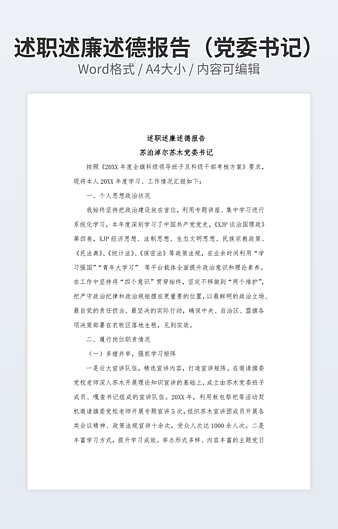 【特殊限制】设计师仅对作品中独创性部分享有著作权,对作品中含有的国旗、国徽等政治图案不享有权利,仅作为作品整体效果的示例展示,禁止商用。 相关关键词: 述职 述廉 报告