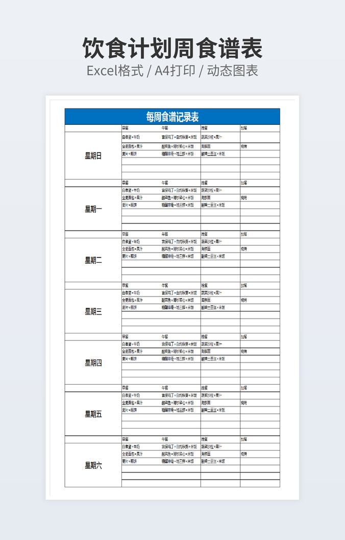 个人饮食计划每周食谱表