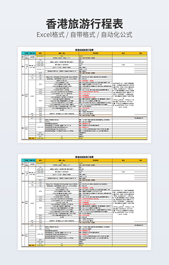 本作品内容为旅游日程规划表下载,大小为12.72KB,作品为高清大图模板,格式为xlsx, 属于旅行计划表模板,作品模板源文件下载后可用编辑替换,模板中如有人物画像仅供参考禁止商用。小Q办公网-提供简历,PPT,Word,Excel优质模板素材下载模版平台,拥有海量的工作总结、竞聘求职、年终颁奖、计划书等。 通过小Q办公网下载旅行计划表模板源文件编辑修改源文件文字和图片即可使用。