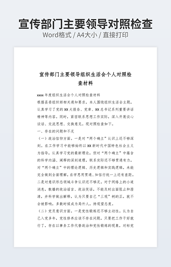 本作品内容为主题民主会对照检查材料下载,大小为82.28KB,作品为高清大图模板,格式为docx, 属于对照检查模板,作品模板源文件下载后可用编辑替换,模板中如有人物画像仅供参考禁止商用。小Q办公网-提供简历,PPT,Word,Excel优质模板素材下载模版平台,拥有海量的工作总结、竞聘求职、年终颁奖、计划书等。 通过小Q办公网下载对照检查模板源文件编辑修改源文件文字和图片即可使用。