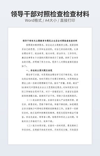 本作品内容为党委班子民主生活会对照检查下载,大小为16.11KB,作品为高清大图模板,格式为docx, 属于对照检查模板,作品模板源文件下载后可用编辑替换,模板中如有人物画像仅供参考禁止商用。小Q办公网-提供简历,PPT,Word,Excel优质模板素材下载模版平台,拥有海量的工作总结、竞聘求职、年终颁奖、计划书等。 通过小Q办公网下载对照检查模板源文件编辑修改源文件文字和图片即可使用。