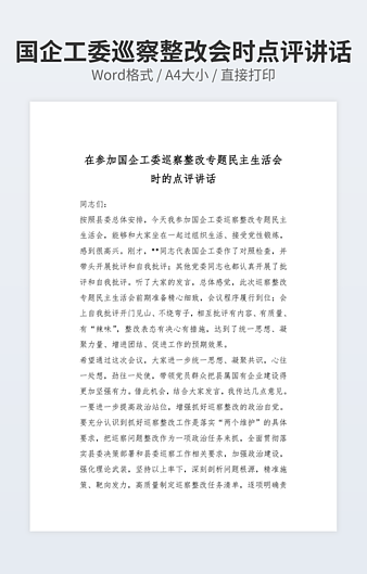 【特殊限制】设计师仅对作品中独创性部分享有著作权,对作品中含有的国旗、国徽等政治图案不享有权利,仅作为作品整体效果的示例展示,禁止商用。 相关关键词: 市政府 办公室 对照 检查 材料