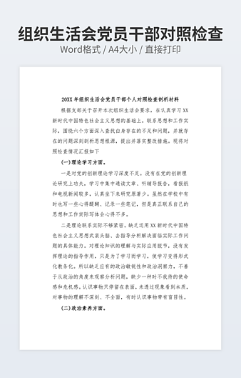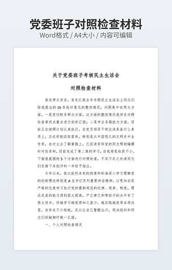 【特殊限制】设计师仅对作品中独创性部分享有著作权,对作品中含有的国旗、国徽等政治图案不享有权利,仅作为作品整体效果的示例展示,禁止商用。 相关关键词: 支委 班子 会对 对照 检查 材料