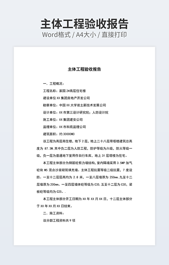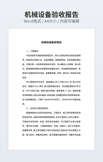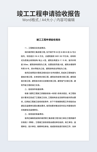 本作品内容为排水工程接管验收报告下载,大小为21.02KB,作品为高清大图模板,格式为docx, 属于验收报告模板,作品模板源文件下载后可用编辑替换,模板中如有人物画像仅供参考禁止商用。小Q办公网-提供简历,PPT,Word,Excel优质模板素材下载模版平台,拥有海量的工作总结、竞聘求职、年终颁奖、计划书等。 通过小Q办公网下载验收报告模板源文件编辑修改源文件文字和图片即可使用。