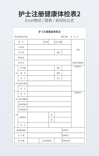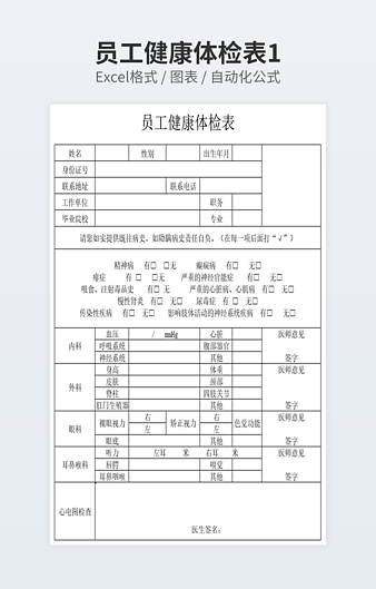 【特殊限制】设计师仅对作品中独创性部分享有著作权,对作品中含有的国旗、国徽等政治图案不享有权利,仅作为作品整体效果的示例展示,禁止商用。 相关关键词: 学校 医院 体检 表格 模板