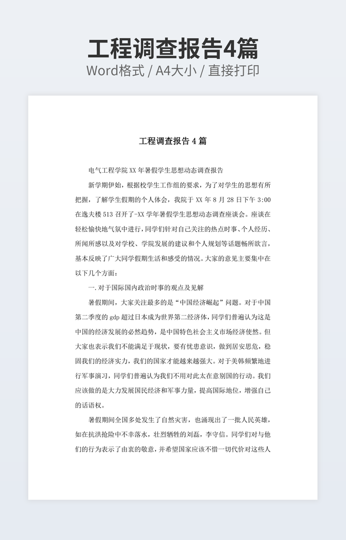 本作品内容为餐饮调查报告4篇下载,大小为30.1KB,作品为高清大图模板,格式为docx, 属于调查报告模板,作品模板源文件下载后可用编辑替换,模板中如有人物画像仅供参考禁止商用。小Q办公网-提供简历,PPT,Word,Excel优质模板素材下载模版平台,拥有海量的工作总结、竞聘求职、年终颁奖、计划书等。 通过小Q办公网下载调查报告模板源文件编辑修改源文件文字和图片即可使用。
