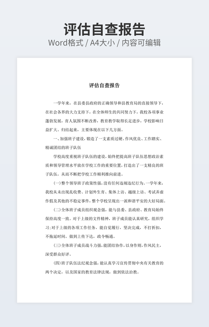 本作品内容为中学体育卫生工作自评报告下载,大小为26.64KB,作品为高清大图模板,格式为docx, 属于自查自评模板,作品模板源文件下载后可用编辑替换,模板中如有人物画像仅供参考禁止商用。小Q办公网-提供简历,PPT,Word,Excel优质模板素材下载模版平台,拥有海量的工作总结、竞聘求职、年终颁奖、计划书等。 通过小Q办公网下载自查自评模板源文件编辑修改源文件文字和图片即可使用。