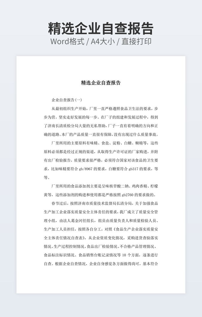 【特殊限制】设计师仅对作品中独创性部分享有著作权,对作品中含有的国旗、国徽等政治图案不享有权利,仅作为作品整体效果的示例展示,禁止商用。 相关关键词: 安全生产 自查 报告