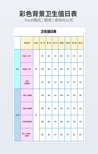 本作品内容为淡黄色背景值日表下载,大小为84.5KB,作品为高清大图模板,格式为xlsx, 属于学生值日表模板,作品模板源文件下载后可用编辑替换,模板中如有人物画像仅供参考禁止商用。小Q办公网-提供简历,PPT,Word,Excel优质模板素材下载模版平台,拥有海量的工作总结、竞聘求职、年终颁奖、计划书等。 通过小Q办公网下载学生值日表模板源文件编辑修改源文件文字和图片即可使用。