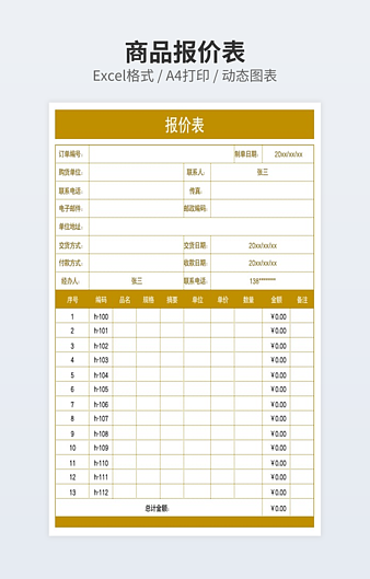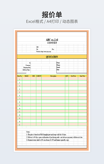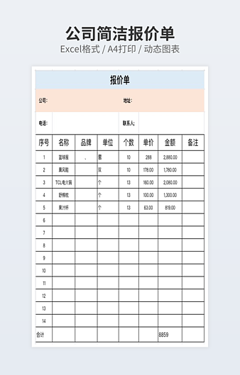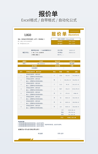 本作品内容为淡黄色简洁报价单下载,大小为25.02KB,作品为高清大图模板,格式为xlsx, 属于报价单模板,作品模板源文件下载后可用编辑替换,模板中如有人物画像仅供参考禁止商用。小Q办公网-提供简历,PPT,Word,Excel优质模板素材下载模版平台,拥有海量的工作总结、竞聘求职、年终颁奖、计划书等。 通过小Q办公网下载报价单模板源文件编辑修改源文件文字和图片即可使用。