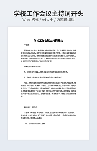 【特殊限制】设计师仅对作品中独创性部分享有著作权,对作品中含有的国旗、国徽等政治图案不享有权利,仅作为作品整体效果的示例展示,禁止商用。 相关关键词: 学校 教科研 会议 主持 范文
