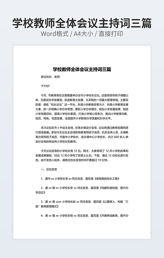 本作品内容为学校表彰会议主持词【三篇】下载,大小为20.74KB,作品为高清大图模板,格式为docx, 属于主持范文模板,作品模板源文件下载后可用编辑替换,模板中如有人物画像仅供参考禁止商用。小Q办公网-提供简历,PPT,Word,Excel优质模板素材下载模版平台,拥有海量的工作总结、竞聘求职、年终颁奖、计划书等。 通过小Q办公网下载主持范文模板源文件编辑修改源文件文字和图片即可使用。