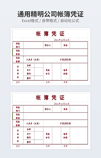 本作品内容为费用帐簿凭证下载,大小为17.91KB,作品为高清大图模板,格式为xlsx, 属于账簿凭证模板,作品模板源文件下载后可用编辑替换,模板中如有人物画像仅供参考禁止商用。小Q办公网-提供简历,PPT,Word,Excel优质模板素材下载模版平台,拥有海量的工作总结、竞聘求职、年终颁奖、计划书等。 通过小Q办公网下载账簿凭证模板源文件编辑修改源文件文字和图片即可使用。