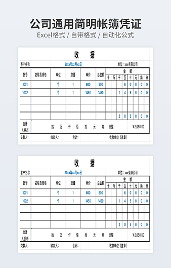 本作品内容为通用简洁帐薄凭证下载,大小为31.06KB,作品为高清大图模板,格式为xlsx, 属于账簿凭证模板,作品模板源文件下载后可用编辑替换,模板中如有人物画像仅供参考禁止商用。小Q办公网-提供简历,PPT,Word,Excel优质模板素材下载模版平台,拥有海量的工作总结、竞聘求职、年终颁奖、计划书等。 通过小Q办公网下载账簿凭证模板源文件编辑修改源文件文字和图片即可使用。