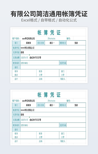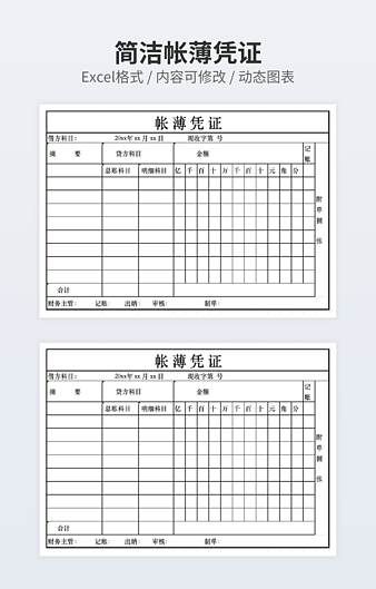 本作品内容为通用精明公司帐簿凭证下载,大小为18.41KB,作品为高清大图模板,格式为xlsx, 属于账簿凭证模板,作品模板源文件下载后可用编辑替换,模板中如有人物画像仅供参考禁止商用。小Q办公网-提供简历,PPT,Word,Excel优质模板素材下载模版平台,拥有海量的工作总结、竞聘求职、年终颁奖、计划书等。 通过小Q办公网下载账簿凭证模板源文件编辑修改源文件文字和图片即可使用。