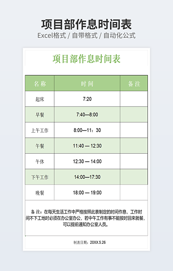 本作品内容为每天作息时间表下载,大小为64.5KB,作品为高清大图模板,格式为xlsx, 属于作息表模板,作品模板源文件下载后可用编辑替换,模板中如有人物画像仅供参考禁止商用。小Q办公网-提供简历,PPT,Word,Excel优质模板素材下载模版平台,拥有海量的工作总结、竞聘求职、年终颁奖、计划书等。 通过小Q办公网下载作息表模板源文件编辑修改源文件文字和图片即可使用。