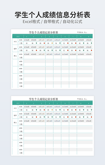 本作品内容为学生成绩信息表下载,大小为21.68KB,作品为高清大图模板,格式为xlsx, 属于学生信息表模板,作品模板源文件下载后可用编辑替换,模板中如有人物画像仅供参考禁止商用。小Q办公网-提供简历,PPT,Word,Excel优质模板素材下载模版平台,拥有海量的工作总结、竞聘求职、年终颁奖、计划书等。 通过小Q办公网下载学生信息表模板源文件编辑修改源文件文字和图片即可使用。
